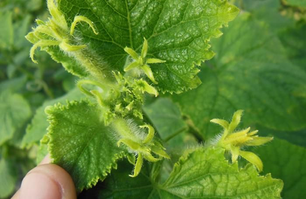 (1)溫度異常時(shí)造成黃瓜花打頂現(xiàn)象的主要原因,在生長前期時(shí),晝夜溫差較大,會(huì)使葉片白天制造的養(yǎng)分不能及時(shí)運(yùn)輸?shù)狡渌课?,?dǎo)致葉片濃綠皺縮,提高老化,影響光合作用。而在低溫情況下種植生長受到抑制,生殖生長超過營養(yǎng)生長,造成花打頂現(xiàn)象。在種植時(shí)要注意溫度的變化,在白天高溫時(shí),加強(qiáng)棚室通風(fēng),降低棚內(nèi)溫度,而在晚上溫度較低時(shí),封閉棚室,使棚內(nèi)溫度升高,減少晝夜溫差。