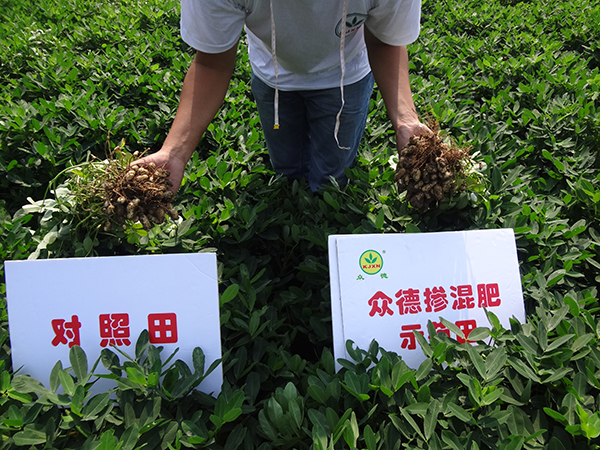 沂南縣辛集北左泉村農民顧守武,去年用眾德(16-12-14)120斤/畝,生物有機肥80斤/畝,新朋友貴蓋美30斤,持力硼2袋,在翻地前一次性施入,到9月10號收獲期測產1173斤,與對照田產量1055斤相比,畝增產118斤,增產幅度11.2%。顧先生滿臉喜悅的說:“用眾德花生高產套餐方案效果非常好,歸功于眾德系列肥料原料考究,配方合理,營養(yǎng)全面,對于重茬、土壤酸化等問題障礙能夠得到有效解決,改良并活化土壤,特別是態(tài)康科、康樸系列葉面肥,能促進花生根系和葉片生長,補充硼、鉬、鈣等中微肥,提高座果率、改善品質,提高產量,農民最終獲得收益”